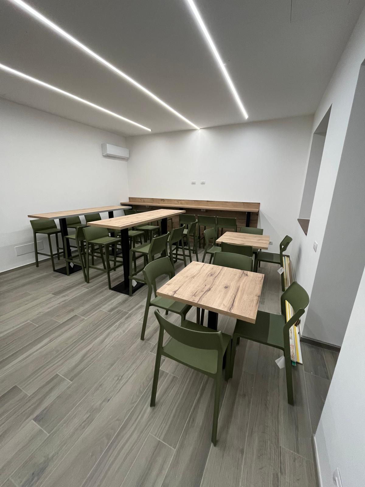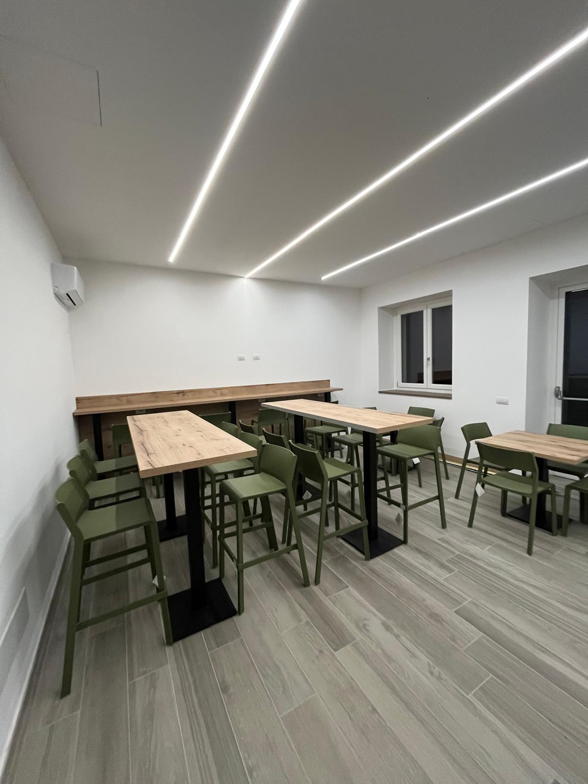 La struttura offre al piano terra una spaziosa sala da pranzo con bar, una cucina industriale completamente attrezzata, bagni per disabili con scivolo e uno spogliatoio con doccia dedicato agli sportivi.