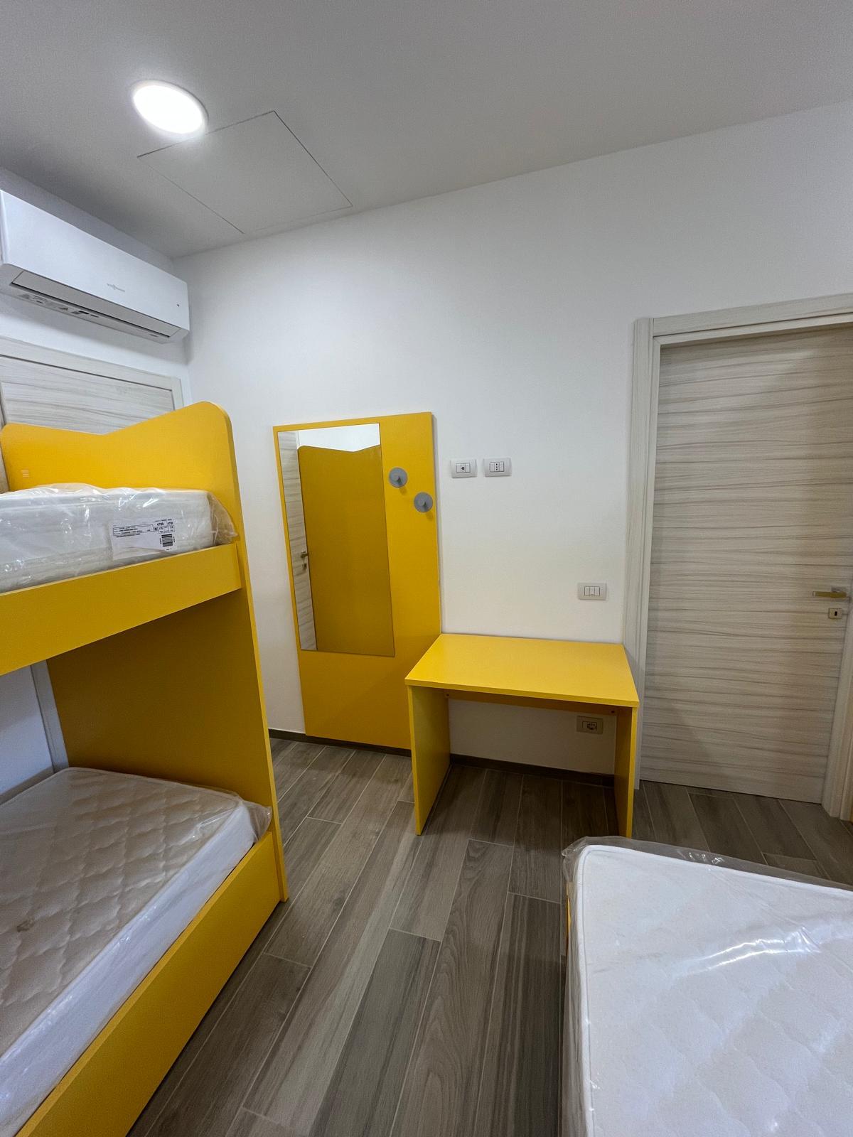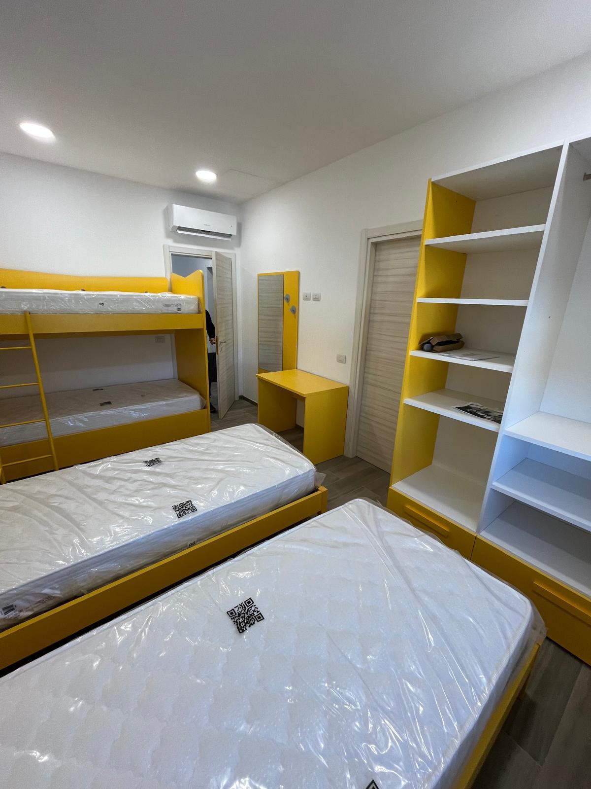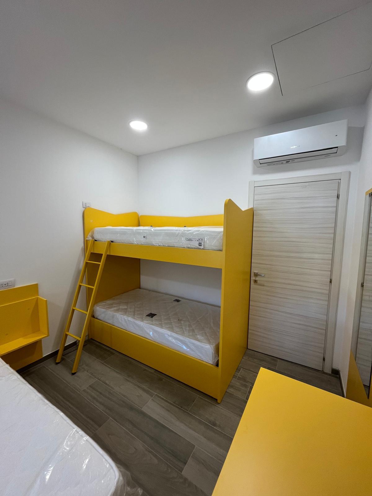 Il primo piano invece accoglie tre camere da letto, ognuna dotata di bagno privato, per un totale di dieci posti letto.